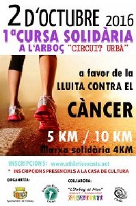 L’Ajuntament de l’Arboç ja està ultimant els últims detalls de la primera edició de la Marxa/Cursa Solidària contra el Càncer, que se celebrarà el proper diumenge 2 d’octubre en un circuit urbà que transcorrerà pels carrers de la vila